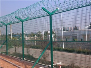 機(jī)場(chǎng)圍界是由Y型立柱、加強(qiáng)型焊接網(wǎng)片、安全防盜連接件和熱鍍鋅刀刺滾籠組成安全防御性級(jí)別很高的隔離網(wǎng)產(chǎn)品。機(jī)場(chǎng)圍界表面采用電鍍、熱鍍、噴塑或浸塑等防腐形式,具有良好的抗腐蝕、抗曬、抗老化的優(yōu)點(diǎn)。其造型美觀,既安全作用又有美觀作用。被廣泛應(yīng)用在機(jī)場(chǎng)、監(jiān)獄、軍事基地等高安全場(chǎng)所。