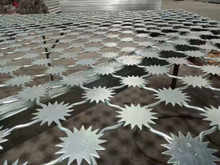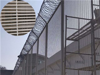 防攀爬金屬隔離網(wǎng)是監(jiān)獄、看守所非常重要的安全防護(hù)設(shè)施,由焊接鋼網(wǎng)加裝蛇腹形刀刺滾籠組合而成。防攀爬金屬隔離網(wǎng)一般分為刀刺金屬隔離網(wǎng)、梅花刺隔離網(wǎng)、密紋型防爬網(wǎng)等。防攀爬金屬隔離網(wǎng)具有結(jié)構(gòu)新穎、堅固緊密、網(wǎng)面平整、網(wǎng)孔均勻、刀鋒銳利、防攀爬、抗腐蝕性強(qiáng)等特點。防攀爬金屬隔離網(wǎng)建設(shè)于監(jiān)獄內(nèi)外墻地面和高墻上,頂部加裝蛇腹形刀刺滾籠,形成一道高不可攀、難以逾越的隔離障礙。配合高壓電網(wǎng)、各種監(jiān)控智慧磐石系統(tǒng),確保監(jiān)獄安全萬無一失。