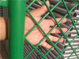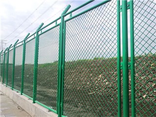 邊框與立柱和底部基臺(tái)之間的距離一般為50mm,立柱一般采用DN65焊管高度不低于2.6米(含300mm彎頭),直徑不小于70mm(塑前厚度),壁厚3.5mm。邊框一般采用DN32焊管,邊框高2.2米,寬1.5米,邊框直徑不小于40mm(塑前厚度),壁厚2.5mm。金屬網(wǎng)采用鋼板網(wǎng)直徑不小于5mm(塑前厚度),網(wǎng)眼見方大小為50*50mm,不大于0.0025平米,上部帶刺鐵絲網(wǎng)型號(hào)為12*14,立柱頂端30公分彎頭拉設(shè)三道鐵絲網(wǎng),每根間距0.1米,立柱、邊框、金屬網(wǎng)與刺鐵絲網(wǎng)外部處理為除銹,熱鍍鋅(鍍鋅量不低于220g/m2),外部浸塑(草綠色),立柱底部為法蘭盤,與底部基礎(chǔ)之間用不銹鋼脹管螺栓固定。