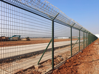 機(jī)場(chǎng)圍界網(wǎng)具有美觀、實(shí)用、方便運(yùn)輸和安裝的特點(diǎn),網(wǎng)片折彎及框架結(jié)構(gòu)大大增強(qiáng)了網(wǎng)體的抗沖擊能力。