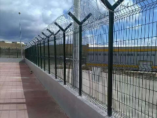 機(jī)場(chǎng)鐵絲網(wǎng)圍界 機(jī)場(chǎng)圍界網(wǎng) 機(jī)場(chǎng)鋼筋網(wǎng)圍界是一種高安全隔離網(wǎng)。它是由鋼筋焊接網(wǎng)、Y型立柱及蛇腹形刀刺網(wǎng)等組成,既美觀大方又能起到安全防護(hù)效果。鋼筋網(wǎng)的網(wǎng)片及V型網(wǎng)的網(wǎng)孔一般為50*100mm,網(wǎng)絲的粗度大于等于5mm,鋼筋網(wǎng)片離地間距不得大于2cm,Y型立柱一般用60*60mm方管焊接而成,壁厚不得低于2mm,整體熱鍍鋅材料+噴塑處理,表面防腐不得低于8年。