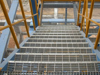踏步板是用扁鋼按照一定的間距和橫桿進(jìn)行交叉排列,通過壓焊機(jī)或者人工將其焊接成中間帶有方形或長方形格子的一種鋼鐵制品。